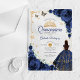 Navy gold Quinceanera celebration acrylic invitation. Features brunette girl in ball gown dress, script font, gold butterflies, roses and tiara. Perfect for an elegant princess style glam celebration. Personalize with your own details. Stylish transparent or frosted acrylic invitations.