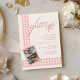 Elegant Chic Pink Check Typography Galentines Day Invitation