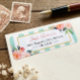 Elegant Chic Pink Flowers Mint Green Stripes Return Address Label.