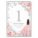 Elegant Chic Pink Roses Silver Quinceanera Table Number