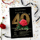 Elegant Chic Red Rose & Gold Number 40th Birthday Invitation