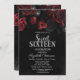Elegant Chic Red Roses Black Sweet 16 Invitation