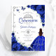 Elegant Chic Royal Blue Silver Floral Quinceanera Invitation
