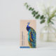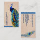 Elegant peacock theme business card featuring a beautiful peacock with vivid feathers and modern typography on a rustic burlap background. Add your name and contact details to make a lasting first impression.