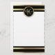 Beautiful modern stationery paper featuring faux gold and black horizontal stripes, a blank square area with black circle and gold frame. The text is fully customisable.