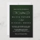 Simple Elegant and Chic wedding invitation with silver text and no decorations on a dark background of rustic green with shades.