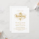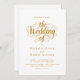 This elegant white-and-gold wedding invitation is perfect for a modern wedding. The simple design features elegant gold calligraphy on a clean white background. The invitation card includes the wedding details on the back instead of paying for a separate enclosure card.