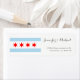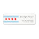 Send out mail with these colourful and bold Chicago themed return address labels featuring the Chicago flag with four red 6-pointed stars and two light blue stripes. The design features a beautiful script font for the name(s) and a printed font for the address, both in a complimentary grey.