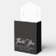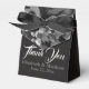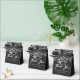Beautiful white callas and chincherinchee floral black and white photograph on charcoal grey background, personalised with grey and white lettering. A stylish classic modern party/wedding favour.