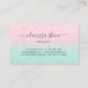 Pretty business card design featuring faux mint and rose gold glitter texture and elegant calligraphy font.