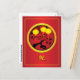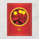 Celebrate the Chinese New Year with a this elegant design featuring a red background and a gold circle with gold lanterns, a tree silhouette and snake, and the lettering for snake.