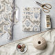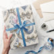 Elevate your spring gifting with this exquisite, vintage-inspired wrapping paper. Featuring a seamless pattern of hand-drawn blue bunnies adorned with gold bows, ornate Easter eggs, and delicate lilies of the valley, this design evokes the timeless charm of classic French toile and fine porcelain. The soft cream background and 3D-embossed effect add a luxurious, tactile feel to every gift. Perfect for sophisticated Easter baskets, spring birthdays, baby showers, or elegant holiday favors.