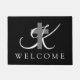 Elegant black and white name monogram religious cross door mat. Make your own custom monogrammed indoor / outdoor doormat with custom background colour and text. Add your own welcome message, family name, surname, initial letter or funny quote. Classy gift idea for new home / housewarming, wedding venue, store, shop, company office, business etc. Stylish script typography. Personalised template with Christianity symbol . Create your own classy entry mat / rug for front door / entryway or hall. Customisable home decor / decorations for your chic house. Christian faith monogrammed logo with custom name initial letter, quote or surname. Unique gift ideas for deacon, preacher, ministry, friends, family, brother, dad, grandpa, grandfather, husband, son, boss, co worker, coach, church pastor, priest, newly weds, wedding couple, Catholic, Baptist, Lutheran, Evangelical, Methodist, Protestant etc. Add your own date, spiritual quote, inspirational scripture, commemorative words, Jesus sayings or custom bible verse. Other places commemoration, ordination, christening, confirmation, communion, remembrance, funeral, congratulations, ordainment etc.