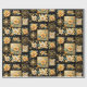 Elegant Christmas Collage Gold on Black Wrapping Paper