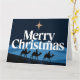 Capture the true meaning of Christmas with this elegant design featuring the Star of Bethlehem shining brightly over a quiet town. The peaceful scene is illuminated by the star's soft glow, guiding three wise men across the desert. Perfect for those seeking a religious and serene Christmas card design.
