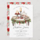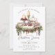 Our Christmas dinner invitation features an elegant holiday dinner place setting and green garland with the saying "eat, drink & be merry" The invitation is simple and elegant, with a white background and black text.