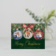Elegant Christmas Family Photos Ornaments Green Foil Holiday Postcard