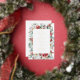 This elegant winter Christmas floral wedding invitation features classic typography printed with real gold foil, bordered with a gold frame and watercolor flowers and greenery.