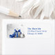 This elegant, modern, and trendy Christmas holiday address label features a gift box adorned with a blue ribbon on a sleek silver background.