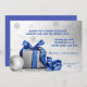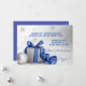 This elegant, modern, and trendy Christmas holiday greeting card features a gift box adorned with a blue ribbon on a sleek silver background.