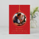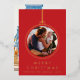 Merry Christmas Red Golden Multi Photo Ornament Foil Holiday Card and your photo on the back.