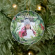 This classic design is customizable with your own photo on the front (and the back - double-sided option only). Each picture is displayed within a beautiful wreath surround of deep green leaves and bright red winter berries, in a watercolor style, giving it a timeless and luxurious feel. Perfect for creating personalised gifts for grandparents and friends. With 'Merry Christmas' greeting at the top, the ornament can also be personalized with your name(s) for the finishing touch. To continue, click 'Personalize' and add your photo(s) and text.