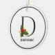 Elegant Christmas Holly Monogram Letter D Ceramic Tree Decoration