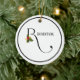 Elegant Christmas Holly Monogram Letter R Ceramic Tree Decoration