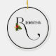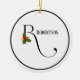 If your family monogram is R, then this ornament is for you! This beautiful design, trimmed with Holiday holly and ribbon tied into a bow, is offered in traditional colors of the season...and adorns this ornament, making it a timeless keepsake and fun addition to your holiday tree decor! Personalize with your family name. You can customize further, if you would like to change the background color. This ornament also makes a wonderful Christmas gift! Happy Holidays!