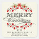 Square Envelope Sealing Labels with return address -- Elegant vintage style Merry Christmas holiday stickers for greeting cards, packages, and seasonal party invitations. Beautiful red holly wreath with poinsettia design on ivory cream buff parchment background and black retro letterpress style decorative typography. Add your family name, address, or personalised message text. Bright and cheerful classic, modern and stylish way to send happy winter holiday greetings to all your friends and family with trendy, unique and rustic traditional charm. Christmas Typography - Elegant Holly Wreath Collection