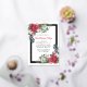Elegant Christmas party invitation features two floral sprigs decorating a gold foil frame. The sprigs have red roses, white cotton flowers, candy canes, pine and holly greenery.