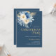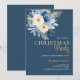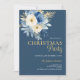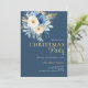 Elegant Christmas Party White & Blue Flowers Gold Invitation