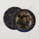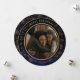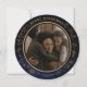 Beautiful Personalised Merry Christmas Round Photo Holiday Card on a Dark Blue background with little stars-like patterns around the frame and at the back. You can replace the photo with your own or your family/couple's photo. You can update all text.