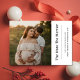 Share your joyful baby news with this elegant holiday pregnancy announcement card. Features space for a maternity photo and editable text such as baby due date and greetings. Perfect for Christmas mailouts and social sharing.