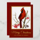Beautiful script elegant Merry Christmas red Cardinal bird on a holly berry branch flat foil card. Text and frame are real foil and can be changed to gold, silver or rose gold colour. Add your own family name and send this unique and beautiful card out for the holidays.