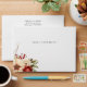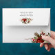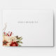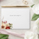 This romantic and classic Christmas or winter-themed wedding envelope design features clusters of vibrant red and white winter flowers, pine, holly berries and rustic twigs, custom modern text graphics and editable text fields. Inside features a complementary red damask background.