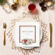 This romantic and classic Christmas or winter-themed design features clusters of vibrant red and white winter flowers, pine, holly berries and rustic twigs and editable text fields surrounded by a rich red damask border with gold edges.
