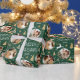 Make your holiday gifts extra special with custom photo wrapping paper. This elegant design features vintage-style illustrations inspired by the opulence of the Art Deco era. It includes leaping reindeer, festive Christmas trees and stars, paired with stylish retro typography. Personalise the template with three favourite photos, and the recipient's name, or your family surname. A unique design that combines timeless style with a modern twist! This seamless pattern gift wrap is available with a matte or glossy finish. Printed colours: dark forest green, white, and a gold colour.
