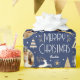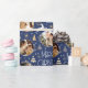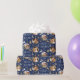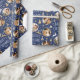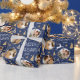 Make your holiday gifts extra special with custom photo wrapping paper. This elegant design features vintage-style illustrations inspired by the opulence of the Art Deco era. It includes leaping reindeer, festive Christmas trees and stars, paired with stylish retro typography. Personalise the template with three favourite photos, and the recipient's name, or your family surname. A unique design that combines timeless style with a modern twist! This seamless pattern gift wrap is available with a matte or glossy finish. Printed colours: dark midnight blue, white, and a gold colour.