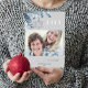 Modern Simple Elegant Silver Snowflakes Christmas JOY Photo Holiday Greeting Card. Beautiful Silver snowflake winter ornament hanging in a Christmas Cypress Branch. You can customise this cool fresh card with your family name and photo.