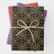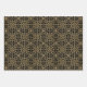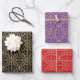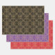 This classic gift wrap is perfect for festive holidays and winter celebrations. Each set contains three sheets in matching designs with varying colour backgrounds. The ornate geometric pattern features interconnected flowers, heart-shaped petals, and decorative snowflakes. Its vintage inspired, traditional design adds a touch of elegance to any gift! Printed colours: black, purple, red and a faux gold texture — you can also change the background colours by using the design editor tool. This wrapping paper is available with a matte or semi-glossy finish.