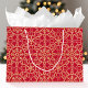 This classic gift bag is perfect for festive presents and winter celebrations. It features an ornate geometric pattern, with interconnected flower shapes, heart-shaped petals, and decorative snowflakes. This vintage inspired, traditional design adds a touch of elegance to any gift! Printed colours: red and a faux gold texture. Available with a matte or glossy finish.