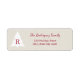 Elegant holiday return address labels feature a modern white geometric tree with a burgundy monogram on a beige background with faux printed canvas texture. Personalise it by adding your initial, name, and address in the sidebar. The custom text will appear in a matching deep red colour with the name in a script font.