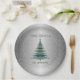 Elegant Christmas Tree Green Silver Name Ornaments Paper Plate