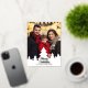This chic, modern family photo Christmas postcard features your vertical holiday photograph framed by a bottom border of white Christmas trees silhouette. Personalise with elegant gold foil script for beautiful minimalist photograph Christmas postcards.