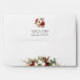 This romantic and classic Christmas or winter-themed wedding envelope design features clusters of vibrant red and white winter flowers, pine, holly berries and rustic twigs, custom modern text graphics and editable text fields.