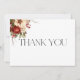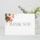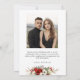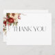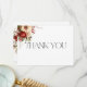 This romantic and classic Christmas or winter-themed design features a cluster of vibrant red and white winter flowers, pine, holly berries and rustic twigs with custom modern "Thank You" text graphic. Back features a photo template and editable text fields.