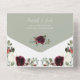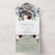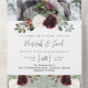 This elegant Christmas winter wedding all in one invitation with RSVP is perfect for an elegant holiday wedding. The design features beautiful watercolor white and burgundy florals with pine, holy berry and eucalyptus greenery on a wood background. This is a perfect colour scheme for a winter wedding. Make this invitation your own by including your own photo, names and all of your wedding details. For further customisation, use the advanced design tool to modify this template.