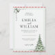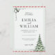 Make your winter wedding magical with this elegant Christmas-themed invitation featuring a hand-drawn silver bell with ribbon and a beautiful watercolor pine tree. Perfect for December celebrations, this sophisticated design combines classic holiday elements with refined wedding elegance. The soft mint green accents and candy cane striped border create a festive yet sophisticated atmosphere. Fully customisable text lets you personalise all details for your special day. Ideal for winter wonderland weddings, Christmas season ceremonies, or holiday-themed celebrations. The timeless design includes space for all your essential wedding details in an elegant typography layout. Available in multiple paper types and sizes to suit your needs.