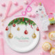 Elegant Christmas Wreath Boarder with Ornaments Paper Plate